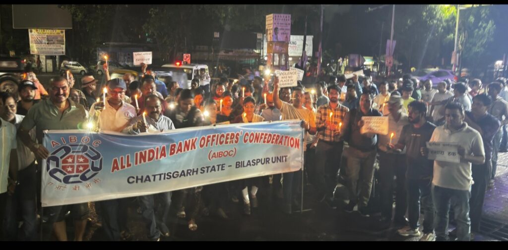 स्टेट बैंक तखतपुर के अधिकारियों से मारपीट के विरोध में सड़क पर उतरे बैंकर्स