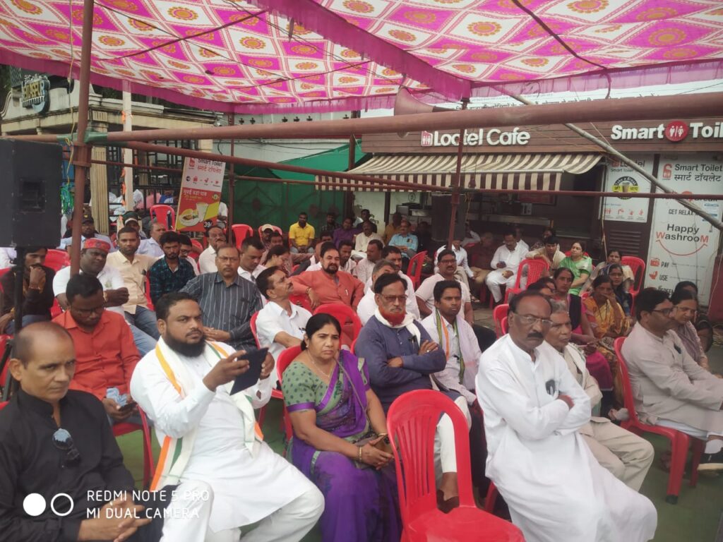 बारिश के बीच नेहरू चौक में कांग्रेस का धरना प्रदर्शन ,भिलाई विधायक को फर्जी केस में फंसाने का आरोप