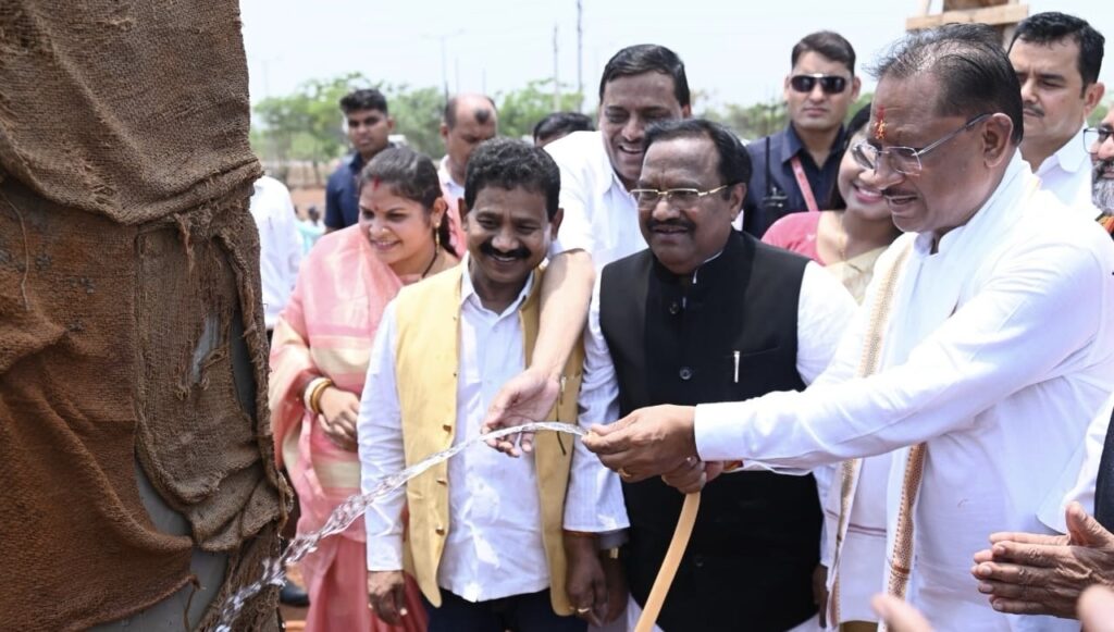 मुख्यमंत्री साय अचानक पहुंचे अछोटी,निर्माणाधीन महतारी सदन का लिया जायजा, पानी से की तराई
