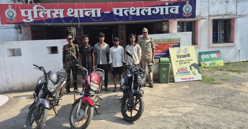मोटरसायकल चोरी के मामले में जशपुर पुलिस का 48 घंटों में खुलासा,4 को किया गिरफ्तार