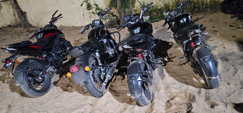 सीएसपी सिविल लाईन निमितेष सिंह ने बताया कि शहर में स्पीड बाइक पर स्टंट करने का चलन तेजी से बढ़ रहा था। यह न केवल उनकी बल्कि आम लोगों की जान के लिए भी खतरा बन गया था। इस पर रोक लगाने के लिए पुलिस ने विशेष बाइक पेट्रोलिंग और वाहनों की जांच शुरू की है। इसी अभियान के तहत रविवार को रिवर व्यू क्षेत्र में पुलिस की टीम ने निगरानी रखी। इस दौरान पल्सर बाइक पर तेज रफ्तार के साथ स्टंट कर रहे साहिल यादव (18) निवासी सेंदरी, अनुराग पटेल (21) निवासी मंगला, मुंगेली जिले के जेठूकापा निवासी विकास यादव (21) और आशीष एक्का (26) को पकड़ लिया गया। इनमें से एक बाइक चालक वाहन के दस्तावेज नहीं दिखा पाया, जिस पर चोरी की आशंका जताते हुए पुलिस ने बाइक जब्त कर ली है।