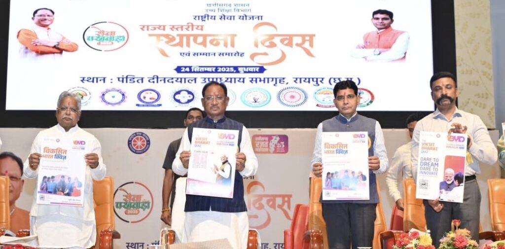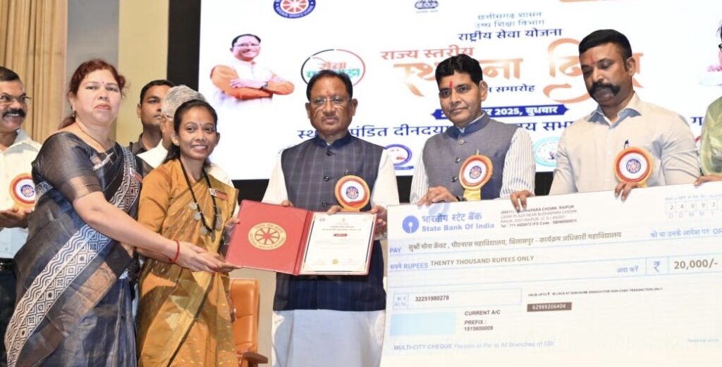 मुख्यमंत्री विष्णु देव साय ने इस अवसर पर राष्ट्रीय सेवा योजना की पत्रिका ‘समर्पण’ और विकसित भारत क्विज कार्यक्रम के पोस्टर का विमोचन किया। उन्होंने राष्ट्रीय सेवा योजना अंतर्गत उत्कृष्ट कार्य कर रही संस्थाओं, अधिकारियों और स्वयंसेवकों को सम्मानित भी किया।