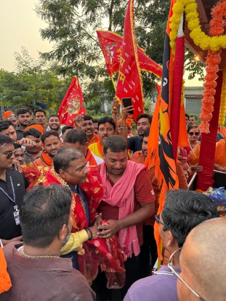 ध्वजा यात्रा में शामिल हुए छत्तीसगढ़ शासन के मंत्री केदार कश्यप
