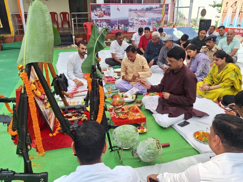 कार्यक्रम में पुलिस बल के अधिकारी और जवान उपस्थित रहे। सभी ने विधि-विधान से शस्त्रों की आराधना की और देश व प्रदेश की सुरक्षा के लिए समर्पित भाव से सेवा करने का संकल्प लिया।