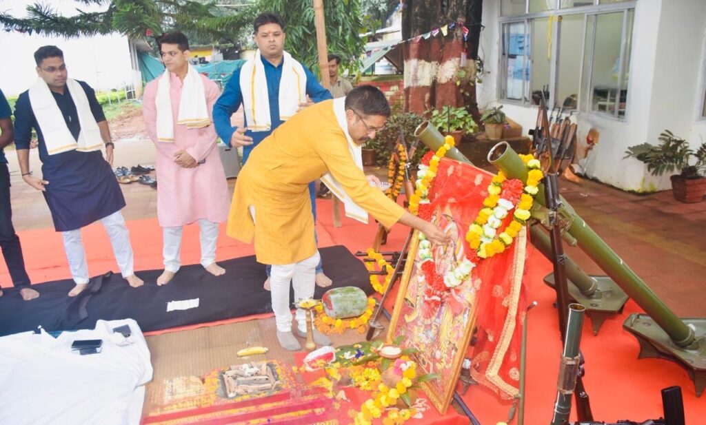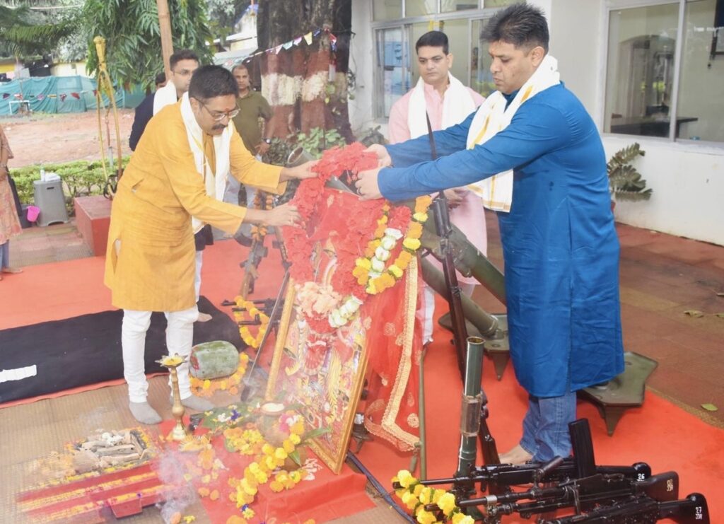 जगदलपुर।विजयदशमी के पावन पर्व पर गुरुवार को आरक्षित पुलिस लाइन, जगदलपुर में परंपरागत शस्त्र पूजन समारोह श्रद्धा एवं भक्ति भाव के साथ संपन्न हुआ। इस अवसर पर पुलिस महानिरीक्षक आईजी बस्तर रेंज आईपीएस सुंदरराज पट्टलिंगम एवं एसपी बस्तर आईपीएस शलभ सिन्हा ने पूजन अनुष्ठान में सहभागिता की।