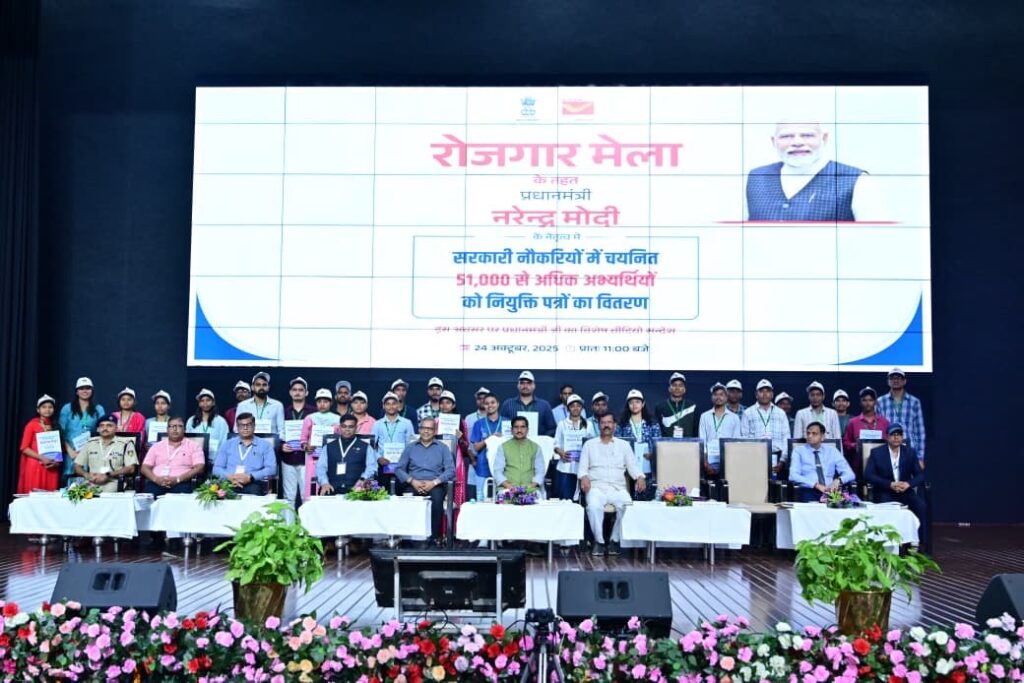 रायपुर : प्रधानमंत्री नरेंद्र मोदी के नेतृत्व में चल रहे रोजगार सृजन अभियान के तहत शुक्रवार को देशभर में एक साथ 40 स्थानों पर 17वां रोजगार मेला आयोजित किया गया। राजधानी रायपुर में आयोजित इस भव्य कार्यक्रम में 95 चयनित युवाओं को नियुक्ति पत्र प्रदान किए गए।