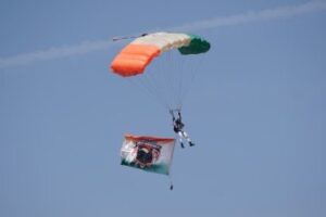 “सूर्यकिरण” टीम ने अनुशासन, परस्पर विश्वास, सटीकता और उत्साह के साथ एक घंटे तक वायु सेना के विमानों के साथ कलाबाजी दिखाकर दर्शकों का भरपूर मनोरंजन किया। नवा रायपुर के सेंध जलाशय में मौजूद हजारों दर्शक पायलटों के हैरतअंगेज साहस और करतबों को देखकर मंत्रमुग्ध होते रहे। विंग कमांडर श्री ए.व्ही. सिंह के नेतृत्व में वन-एफ-9 और वन-एफ-8 हेलीकॉप्टर यूनिट ने वी-17 और वी-5 हेलीकॉप्टरों से स्लीपरी और स्काई-ऑपरेशन के करतब दिखाए। ‘आदिदेव’ नाम के इन हेलीकॉप्टरों से केवल 15 मीटर ऊंचाई पर स्थिर रहकर 14 गरूड़ कमांडोज रस्सी के सहारे नीचे उतरे। वहीं स्काई-ऑपरेशन के दौरान आठ गरूड़ कमांडोज रस्सी पर लटककर हेलीकॉप्टर से दर्शकों के सामने से आकाश में उड़ते हुए गुजरे। इन दोनों ऑपरेशनों को लड़ाई और आपदा के दौरान जनसामान्य को बचाने के लिए किया जाता है।