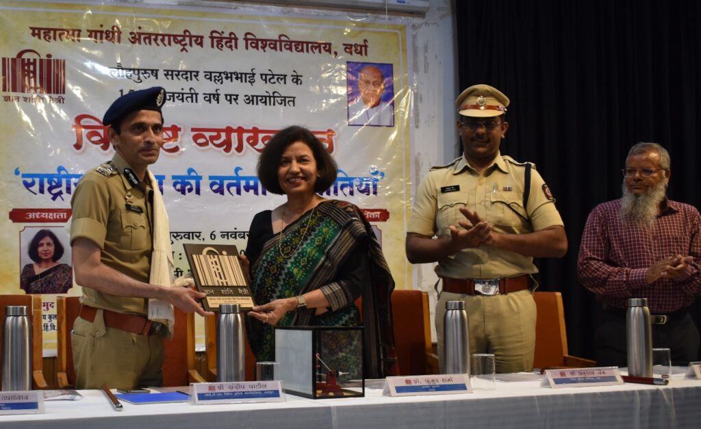 वर्धा।भारत हर कठिन परिस्थिति में अपनी एकता का परिचय देता आया है। हमारे संविधान में हर चुनौती का समाधान मौजूद है यह कहना है नागपुर परिक्षेत्र के विशेष पुलिस महानिरीक्षक आई.पी.एस. संदीप पाटील का। वे गुरुवार को महात्मा गांधी अंतरराष्ट्रीय हिंदी विश्वविद्यालय वर्धा में आयोजित राष्ट्रीय एकता की वर्तमान चुनौतियाँ’ विषयक विशिष्ट व्याख्यान को संबोधित कर रहे थे।