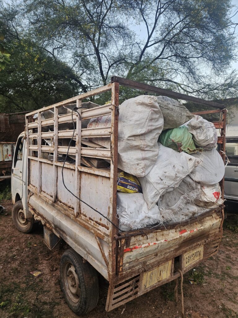 तलाशी के दौरान सफेद रंग का छोटा हाथी वाहन क्रमांक CG 10 C 5074 से 1.5 क्विंटल पुराने स्टील बर्तन कढ़ाई एवं अन्य कबाड़ सामग्री कीमत 51,000 जब्त की गई। वाहन की कीमत 30,000 आंकी गई टीआई के अनुसार कुल जब्ती 81,000 की हुई।