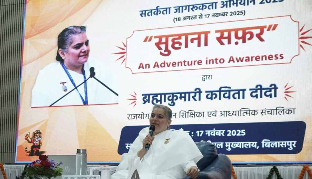 बिलासपुर।एसईसीएल मुख्यालय में सतर्कता जागरूकता सप्ताह 2025 के अंतर्गत सोमवार को सुहाना सफ़र विषय पर प्रेरक उद्बोधन सत्र का आयोजन किया गया। कार्यक्रम में मुख्य वक्ता के रूप में मुंबई से पधारी ब्रह्माकुमारी कविता दीदी राजयोग मेडिटेशन शिक्षिका एवं आध्यात्मिक संचालिका उपस्थित रहीं।
