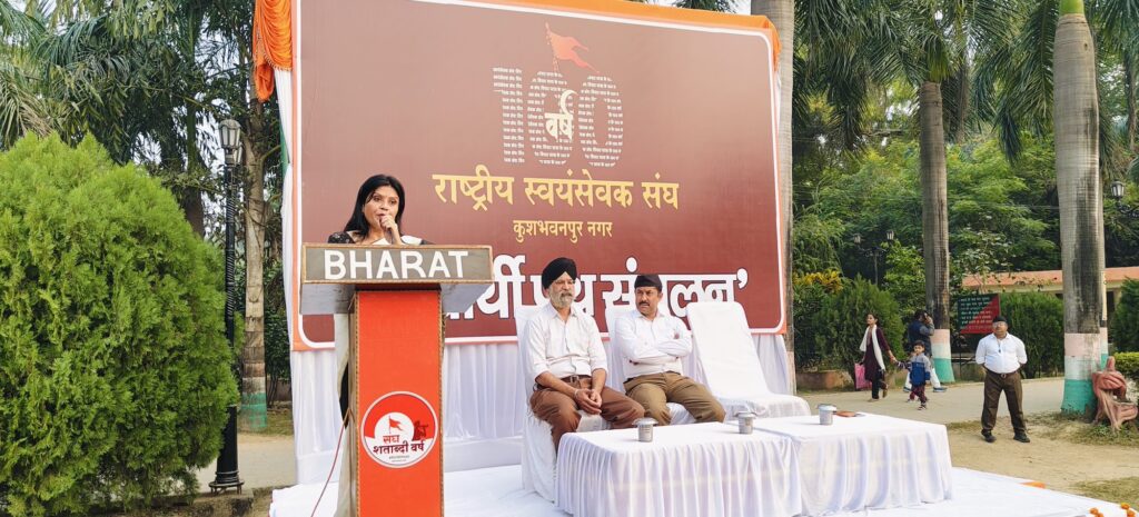 कार्यक्रम की अध्यक्षता सेंट जेवियर हाई स्कूल की प्रधानाचार्या श्रीमती जया वाजपेई गौड़ ने की। उन्होंने कहा कि राष्ट्रीय स्वयंसेवक संघ की 100 वर्षों की यात्रा केवल समय का अंक नहीं, बल्कि सतत साधना और राष्ट्र निर्माण की एक दीर्घ परंपरा है।