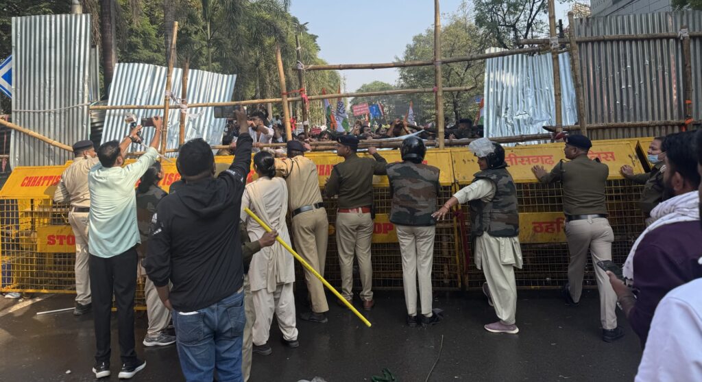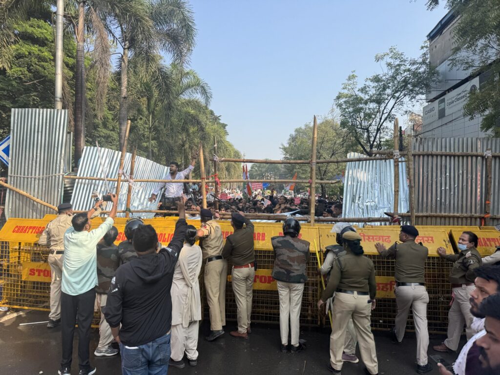 हजारों कार्यकर्ता सड़कों पर, पुलिस ने नेहरू चौक पर रोका