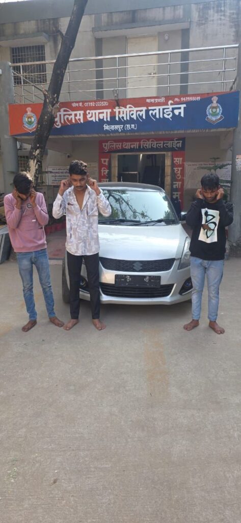 बिलासपुर। रिवर व्यू क्षेत्र में कार का दरवाजा खोलकर खतरनाक स्टंट करने और उसका ड्रोन से वीडियो बनाकर सोशल मीडिया पर वायरल करने वाले तीन युवकों को सिविल लाइन पुलिस ने गिरफ्तार कर लिया है। वीडियो सामने आने के बाद पुलिस ने तत्काल जांच शुरू की और संबंधित युवकों की पहचान कर कार्रवाई की है। खतरनाक स्टंट करते हुए खुद को सोशल मीडिया पर दिखाने की चाह में युवकों ने न सिर्फ अपनी जान जोखिम में डाली, बल्कि सड़क पर मौजूद अन्य लोगों की सुरक्षा से भी खिलवाड़ किया।