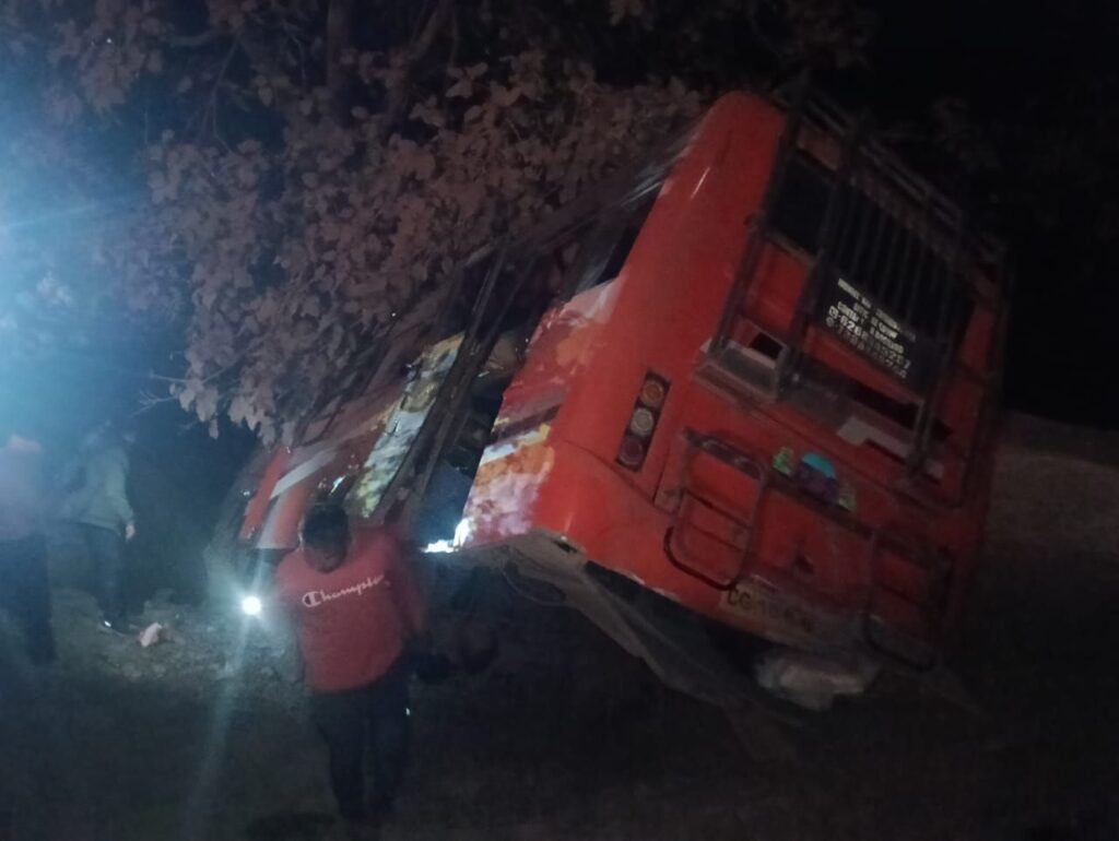 बिलासपुर। मरवाही से बिलासपुर आ रही यात्री बस मंगलवार देर रात गंभीर हादसे का शिकार हो गई। घटना केंदा घाटी स्थित बंजारी माता मंदिर के पास हुई, जहां सड़क पर गहरे गड्ढों के कारण बस अनियंत्रित होकर पलट गई। बस में करीब 25 यात्री सवार थे। हादसे के तुरंत बाद चीख-पुकार मच गई और मौके पर अफरातफरी की स्थिति बन गई।