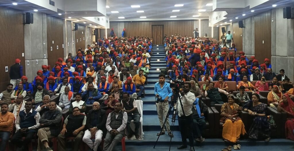 छत्तीसगढ़ । बिलासपुर में बांस गीत गाथा अकादमी छत्तीसगढ़ द्वारा आयोजित भव्य बांस गीत गाथा समारोह में प्रदेशभर से आए 150 से अधिक बांस गायक वादक और कलाकारों ने एक साथ प्रस्तुति देकर अभूतपूर्व रिकॉर्ड बनाया। यह ऐतिहासिक आयोजन पंडित देवकीनंदन दीक्षित सभा भवन, लाल बहादुर शास्त्री स्कूल परिसर में दोपहर 2 बजे आरंभ हुआ और देर रात तक चलता रहा।