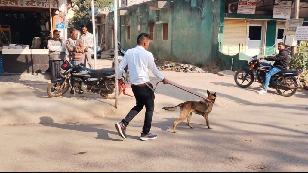 पुलिस डाॅग पहले भटका, फिर घुसा एक मकान में