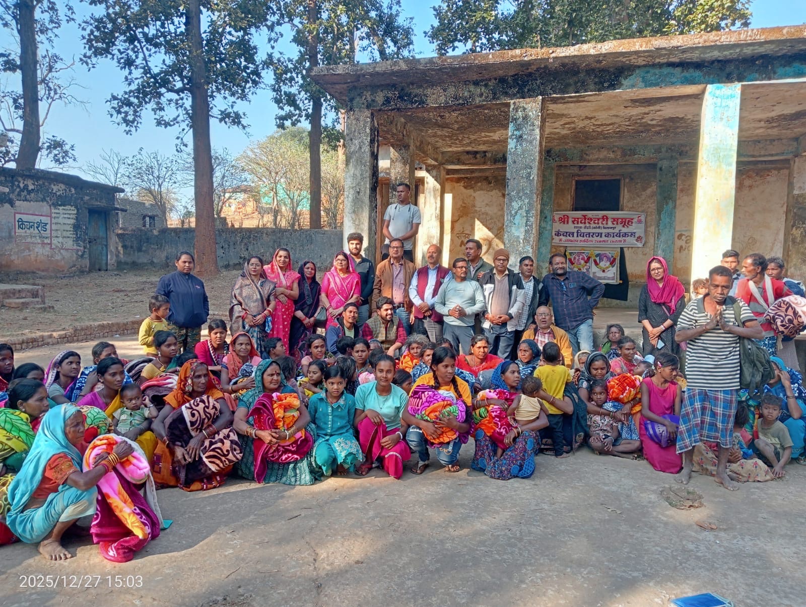कंबल एवं गर्म वस्त्र प्राप्त कर ग्रामीणों ने प्रसन्नता व्यक्त की और श्री सर्वेश्वरी समूह के जयकारे लगाए।