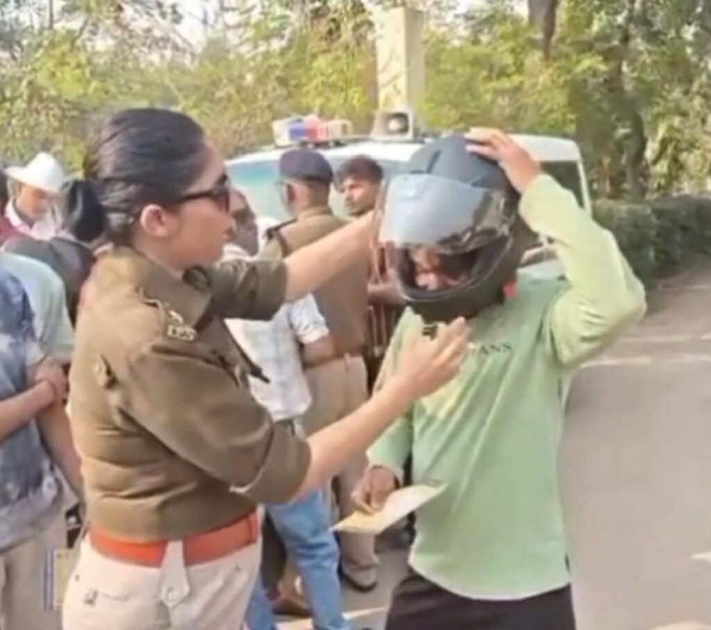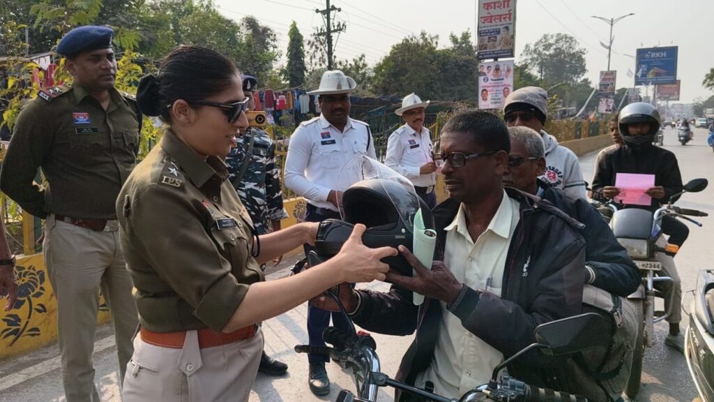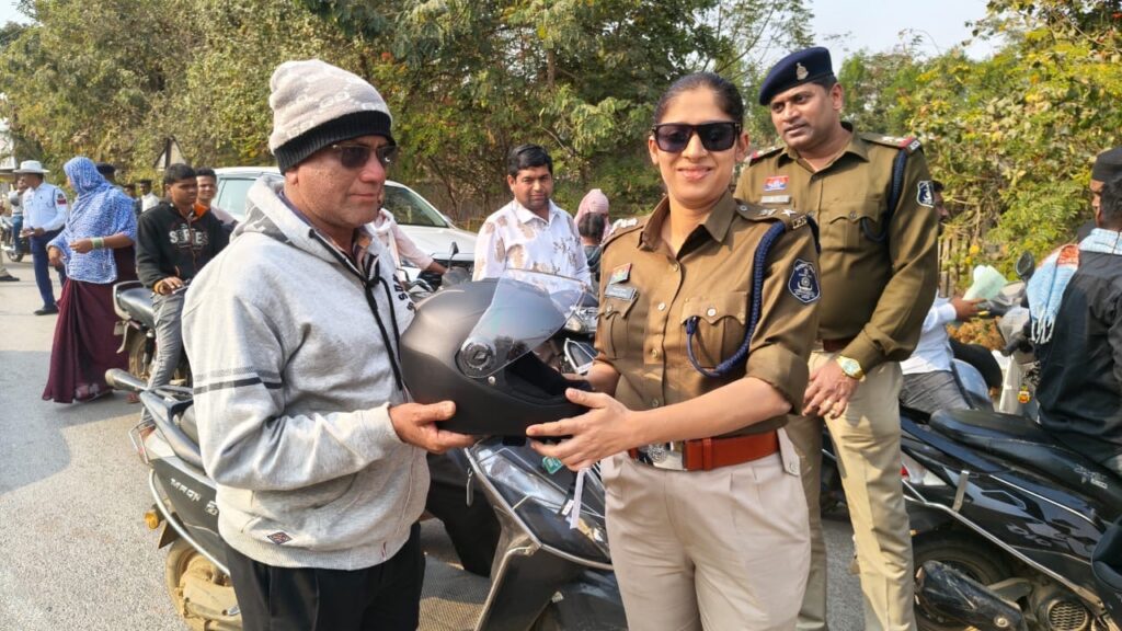 एसपी ने समझाईस देते हुए आम नागरिकों को किया हेलमेट वितरण ,दिया यातायात नियमों का पालन करने का संदेश