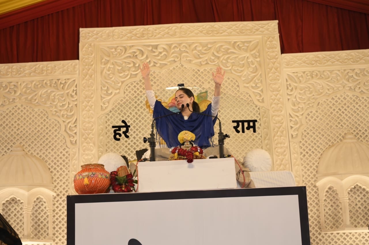 भजनों के माध्यम से श्रद्धालुओं को मंत्रमुग्ध करते हुए जया किशोरी ने नानी बाई का मायरो कथा का प्रारंभ किया। उन्होंने नरसिंह जी के बचपन की कथा सुनाई, जिसमें बताया कि वे जन्म से गूंगे और बहरे थे। उनकी दादी उन्हें एक संत के पास लेकर गईं, जहां संत के आशीर्वाद से नरसिंह जी ने “राधे कृष्ण” का उच्चारण किया और चमत्कार हुआ। जया किशोरी ने बताया कि ठाकुर जी ने नरसिंह जी को यह वरदान दिया था कि उन्हें इतना अन्न और धन मिलेगा कि बारह पीढ़ियां बैठकर खाएं, तब भी समाप्त नहीं होगा।