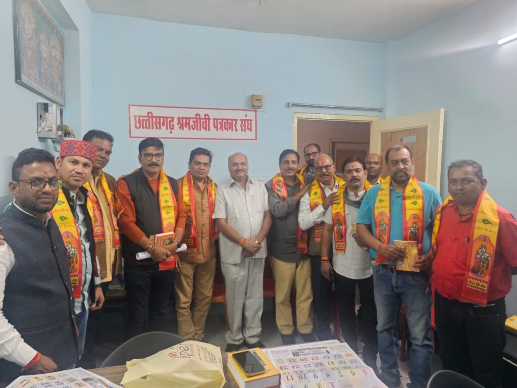 रायपुर 18 जनवरी 2026। रायपुर प्रेस क्लब के नव निर्वाचित पदाधिकारियों का छत्तीसगढ़ श्रमजीवी पत्रकार संघ द्वारा प्रदेश कार्यालय में सम्मान एवं अभिनंदन किया गया। इस अवसर पर प्रेस क्लब के नवनिर्वाचित अध्यक्ष मोहन तिवारी, महासचिव गौरव शर्मा सहित दिलीप साहू, भूपेश जांगड़े एवं दिनेश यदु का पुष्पगुच्छ एवं श्रीरामचरितमानस भेंट कर अभिनंदन किया गया।