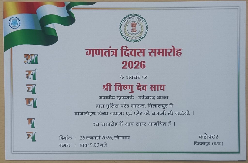 बिलासपुर, 25 जनवरी 2026।मुख्यमंत्री विष्णुदेव साय गणतंत्र दिवस के अवसर पर संभागीय मुख्यालय बिलासपुर के पुलिस परेड मैदान में आयोजित मुख्य समारोह में राष्ट्रीय ध्वज फहराएंगे। इस अवसर पर वे परेड की सलामी लेंगे तथा राज्य की जनता के नाम संदेश का वाचन करेंगे। जिला प्रशासन द्वारा गणतंत्र दिवस समारोह की समस्त तैयारियां पूर्ण कर ली गई हैं।