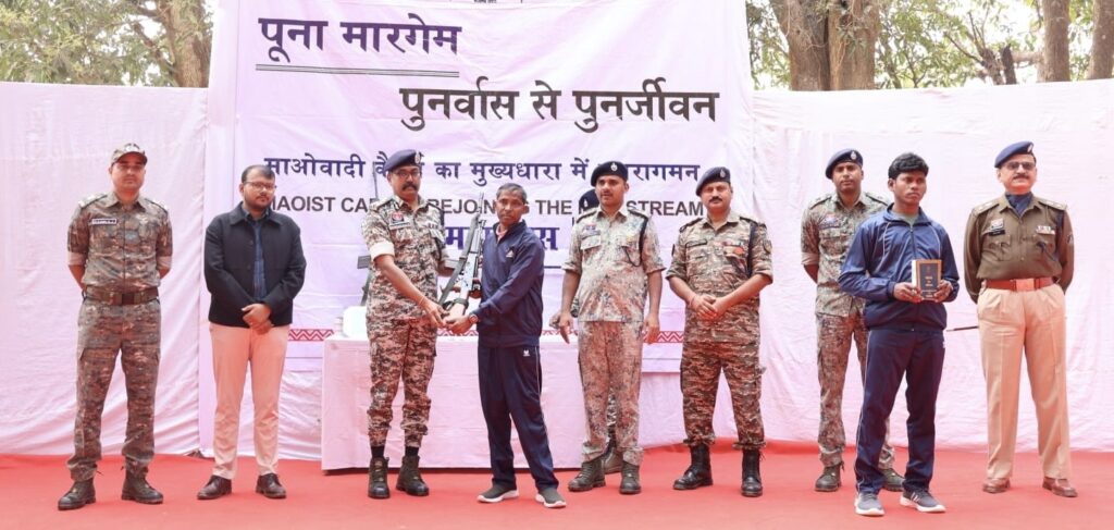 पूना मारगेम अभियान के तहत सुकमा में ऑटोमैटिक हथियारों सहित पुनर्वास