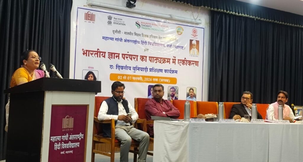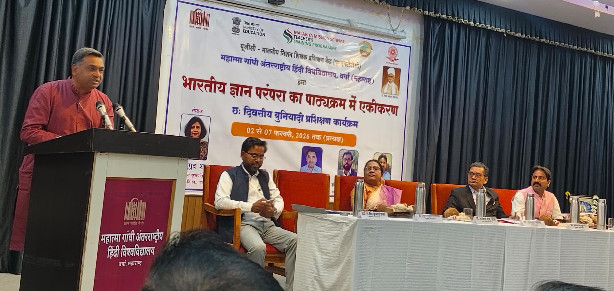 वर्धा।महात्मा गांधी अंतरराष्ट्रीय हिंदी विश्वविद्यालय में विश्वविद्यालय अनुदान आयोग एवं शिक्षा मंत्रालय के भारतीय ज्ञान परंपरा विभाग के सहयोग से भारतीय ज्ञान परंपरा का पाठ्यक्रम में एकीकरण विषय पर आयोजित छह दिवसीय बुनियादी प्रशिक्षण कार्यक्रम का शुभारंभ ग़ालिब सभागार में हुआ।