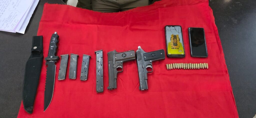 मिनीबस्ती से नशीली टेबलेट और हथियार बरामद