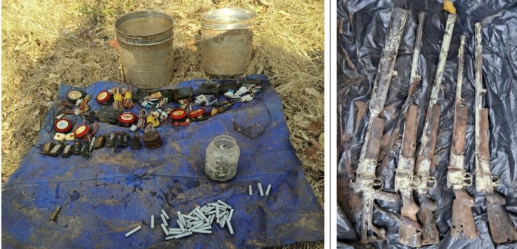 छत्तीसगढ़ गरियाबंद।जिले के ओडिशा सीमा से लगे पहाड़ी इलाकों में माओवादियों द्वारा छिपाकर रखे गए हथियारों और विस्फोटक सामग्री के बड़े डम्प का खुलासा हुआ है। थाना मैनपुर अंतर्गत ग्राम भालूडिग्गी एवं मेटाल क्षेत्र की पहाड़ियों में चलाए गए सघन सर्च अभियान के दौरान जिला पुलिस बल गरियाबंद की ई-30 ऑप्स टीम ने छह अलग-अलग स्थानों से ऑटोमेटिक हथियारों सहित हथियार निर्माण से जुड़ी सामग्री बरामद की है।