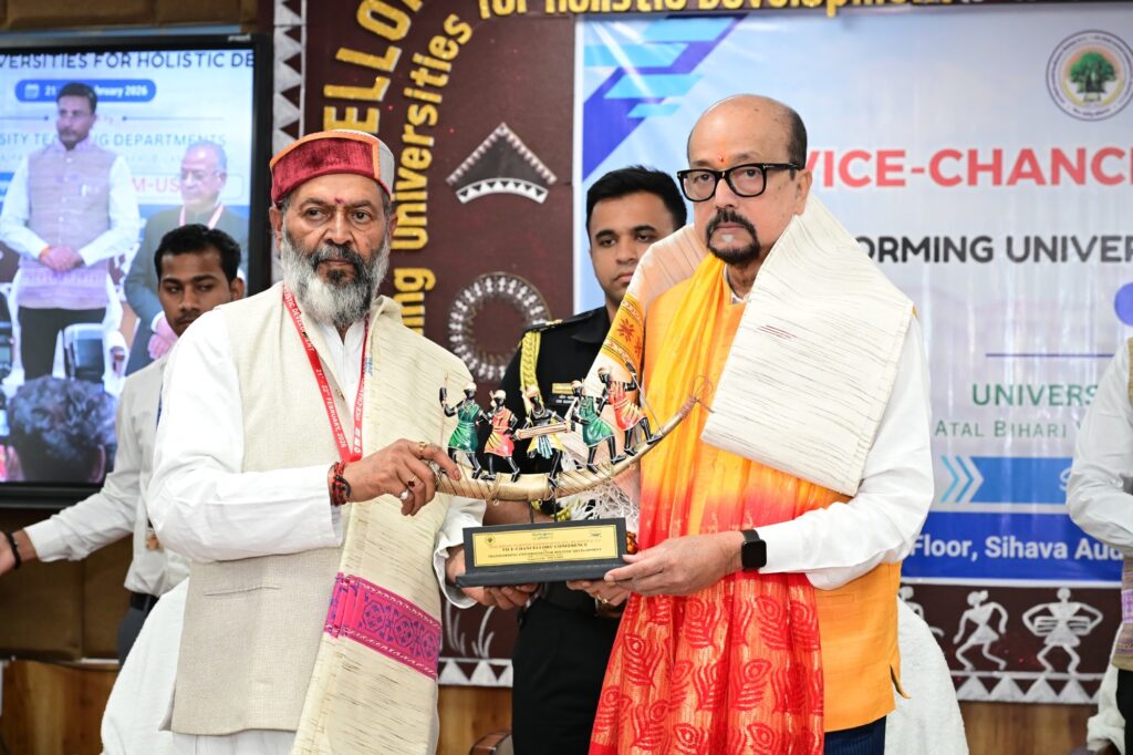 कार्यक्रम की अध्यक्षता करते हुए अटल बिहारी वाजपेयी विश्वविद्यालय के कुलपति आचार्य ए.डी.एन. वाजपेयी ने विश्वविद्यालय की शैक्षणिक एवं प्रशासनिक उपलब्धियों की जानकारी दी। उन्होंने बताया कि राष्ट्रीय शिक्षा नीति के अनुरूप पाठ्यक्रम निर्माण, दीक्षांत समारोहों के आयोजन तथा समयबद्ध परीक्षा परिणामों के क्षेत्र में विश्वविद्यालय ने उल्लेखनीय प्रगति की है। प्रशासनिक पारदर्शिता और सामूहिक निर्णय प्रक्रिया विश्वविद्यालय की प्राथमिकता है तथा वित्तीय सुदृढ़ीकरण एवं अधोसंरचना विकास की योजनाओं पर निरंतर कार्य किया जा रहा है।