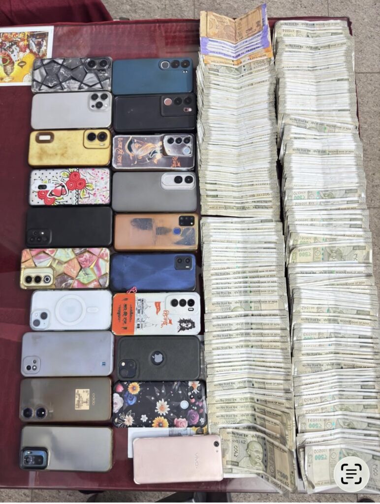 सूचना की तस्दीक के बाद पुलिस टीम ने मौके पर दबिश दी और घेराबंदी कर कुल 19 आरोपियों को पकड़ लिया। तलाशी के दौरान आरोपियों के पास से 52 पत्ती ताश, नकद 2 लाख 52 हजार 520 रुपये तथा अलग-अलग कंपनियों के 20 मोबाइल फोन, जिनकी अनुमानित कीमत 2 लाख 50 हजार रुपये है, जब्त किए गए। इस तरह कुल 5 लाख 2 हजार 520 रुपये की संपत्ति जब्ती में ली गई।