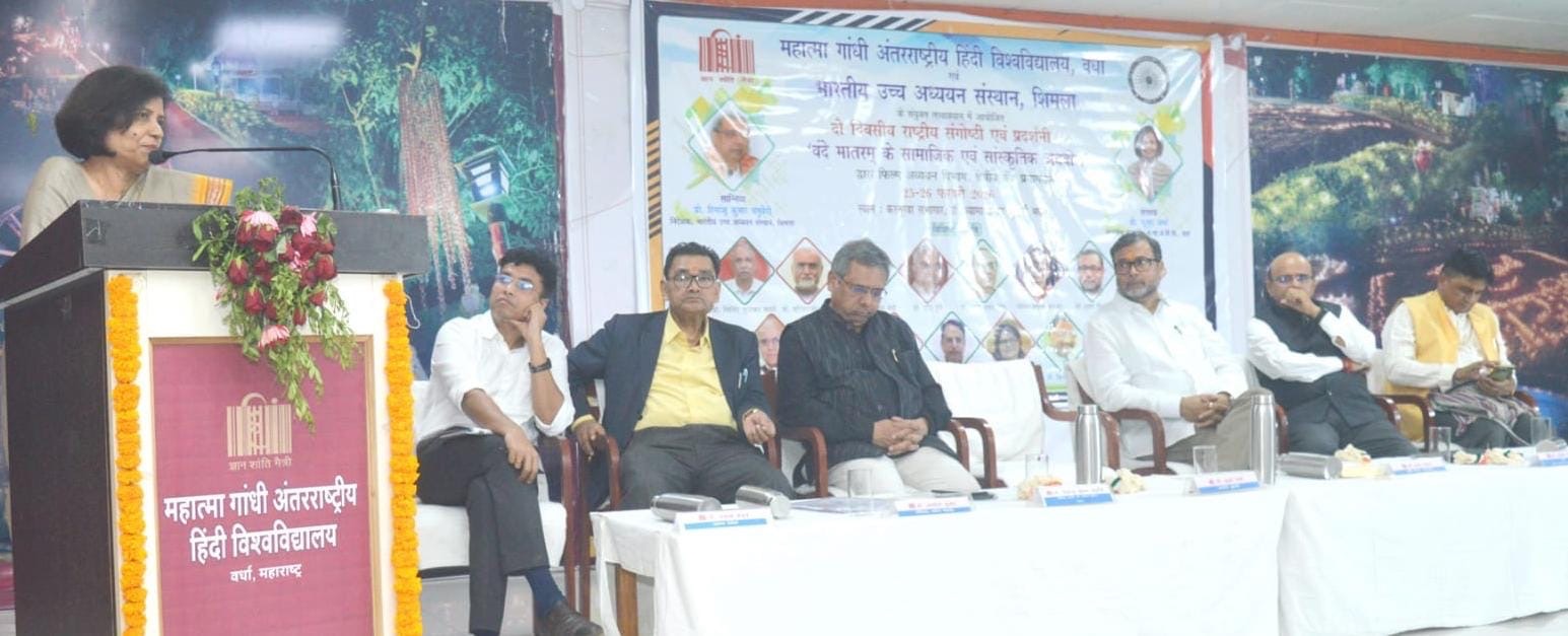वर्धा, 26 फरवरी 2026। महात्मा गांधी अंतरराष्ट्रीय हिंदी विश्वविद्यालय, वर्धा एवं भारतीय उच्च अध्ययन संस्थान, शिमला के संयुक्त तत्वावधान में आयोजित दो दिवसीय राष्ट्रीय संगोष्ठी का समापन गुरुवार, 26 फरवरी को कस्तूरबा सभागार में हुआ। संगोष्ठी का विषय ‘वंदे मातरम् के सामाजिक एवं सांस्कृतिक अवबोध’ रहा, जबकि ‘वंदे मातरम् की सांगीतिक यात्रा’ शीर्षक से प्रदर्शनी का आयोजन किया गया, जो आगामी कुछ दिनों तक जारी रहेगी।