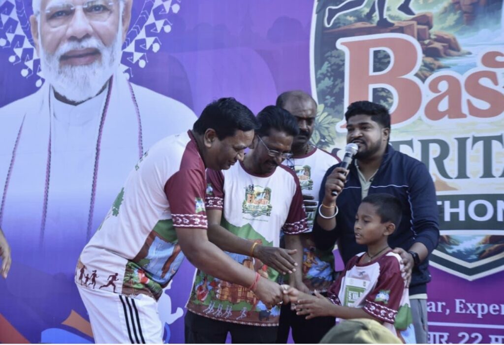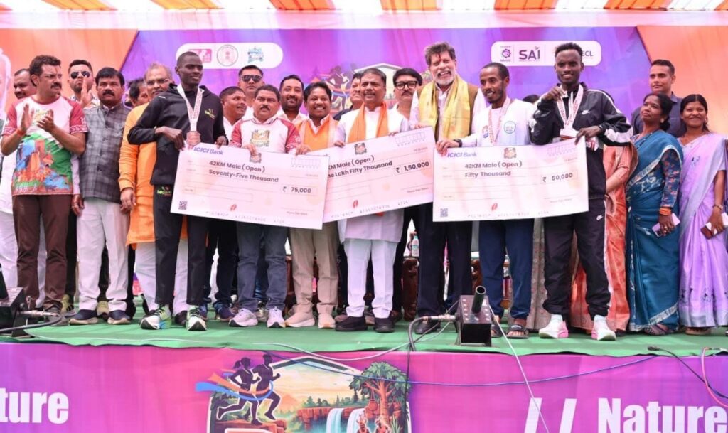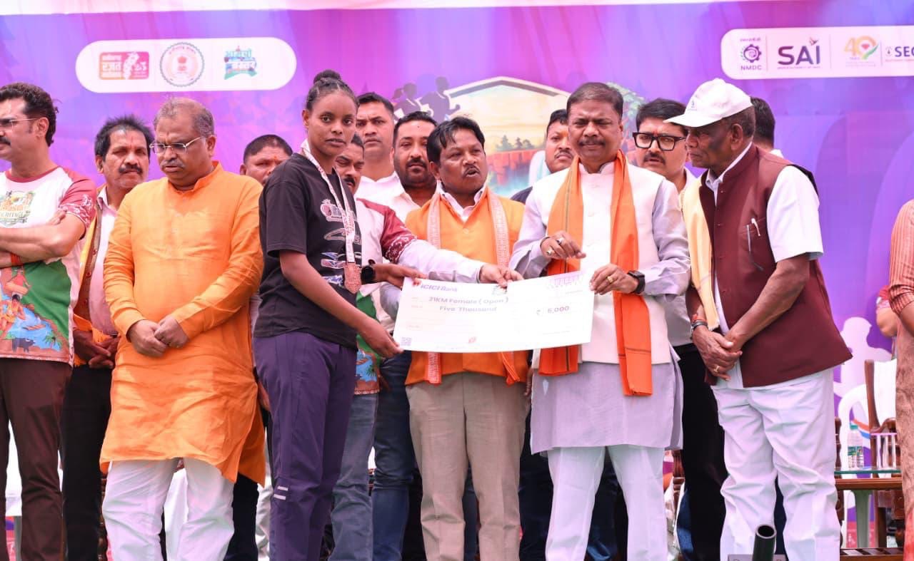 स्थानीय प्रतिभाओं ने भी शानदार प्रदर्शन किया। बस्तर पुरुष वर्ग में संजय कोर्राम ने 2:31:50 घंटे में दौड़ पूरी कर पहला स्थान हासिल किया, जबकि महिला वर्ग में कुसुम शार्दुल ने 3:18:43 घंटे के साथ बाजी मारी।