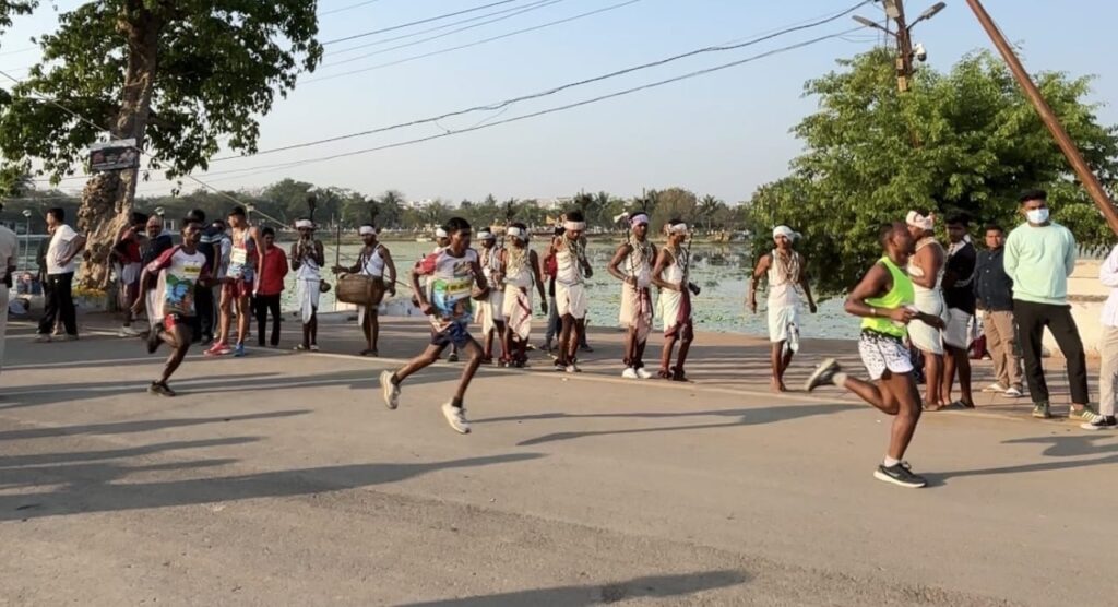 मैराथन की शुरुआत ऐतिहासिक लाल बाग से हुई और 42 किलोमीटर लंबे मार्ग में विभिन्न स्थानों पर धावकों का स्वागत पारंपरिक नृत्य प्रस्तुतियों से किया गया। चांदनी चौक पर नेगानार के झाड़ा सिरहा नृत्य और राम मंदिर क्षेत्र में छिंदावाड़ा के धुरवा नृत्य ने प्रतिभागियों का उत्साह बढ़ाया। पूरे मार्ग में अलग-अलग अंचलों के कलाकारों ने अपनी प्रस्तुतियों से आयोजन को जीवंत बनाए रखा।