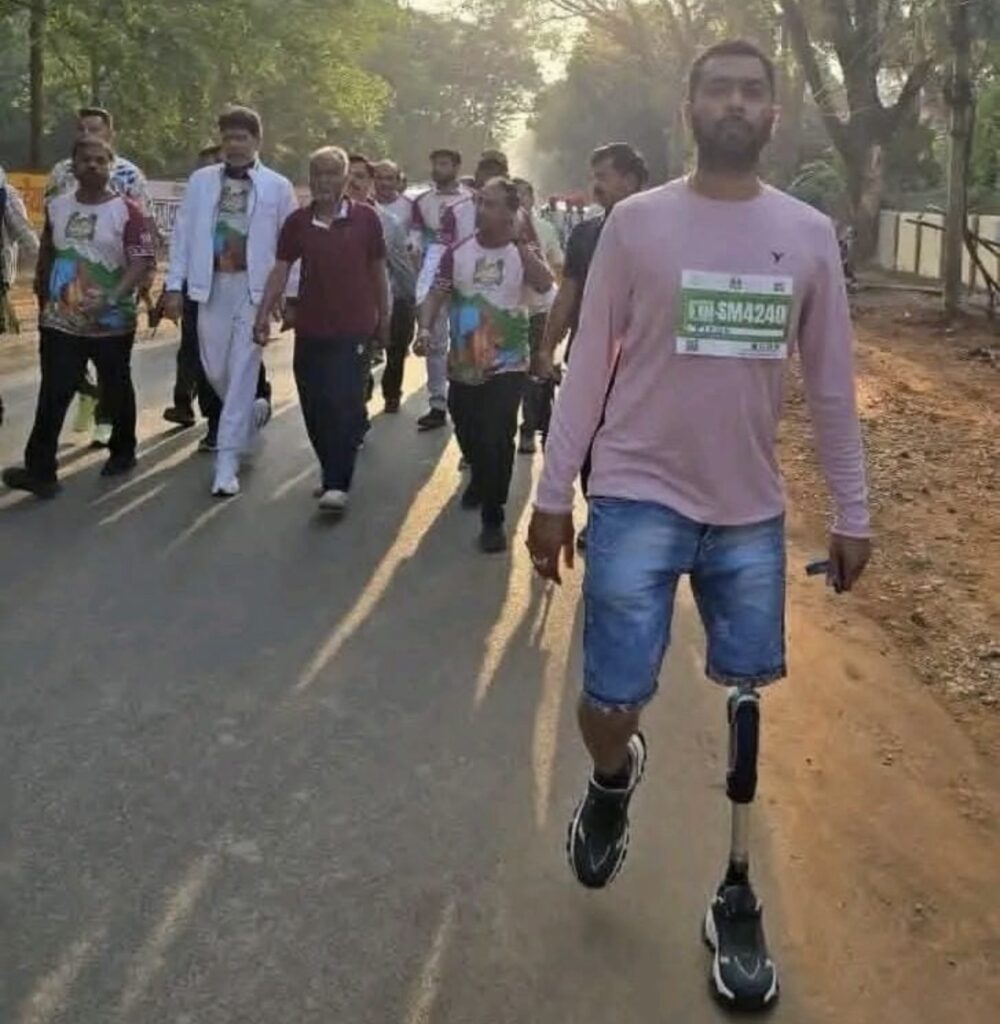 मैराथन के दौरान दंतेवाड़ा के कृषि महाविद्यालय के प्राचार्य पीयूष कुमार ने अपने अदम्य साहस से सभी को प्रेरित किया। एक पैर गंवाने के बावजूद उन्होंने कृत्रिम अंग के सहारे 5 किमी दौड़ पूरी की।