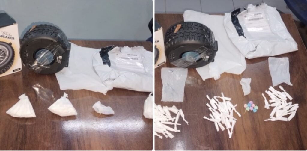 पुलिस ने आरोपियों के कब्जे से 48.03 ग्राम एमडीएमए कीमत लगभग 7 लाख रुपये 8 पार्टी पिल्स 9 मोबाइल फोन स्प्लेंडर मोटरसाइकिल CG 04 NG 8529 ड्रग्स सप्लाई में प्रयुक्त कुरियर बॉक्स बरामद किया है। कुल जब्ती की अनुमानित कीमत लगभग 10 लाख रुपये बताई गई है।