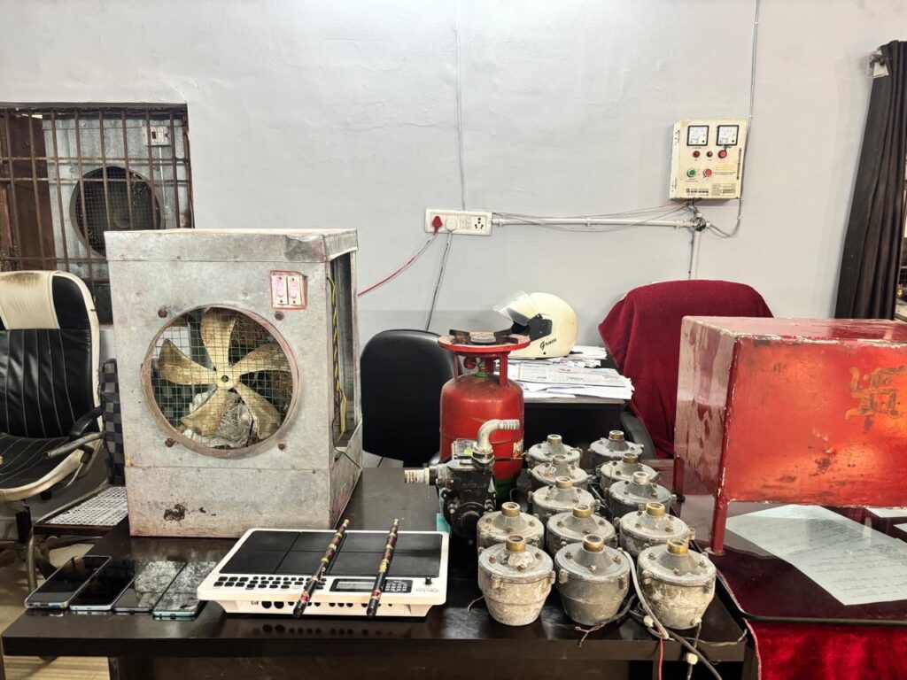पुलिस ने आरोपियों के पास से कुल लगभग 2.80 लाख रुपये मूल्य का सामान जब्त किया है, जिसमें 4 मोबाइल फोन, मंदिर की दानपेटी, डीजे व साउंड सिस्टम के उपकरण, लाउडस्पीकर यूनिट, एम्प्लीफायर, गैस सिलेंडर, कूलर, प्लास्टिक कुर्सियां, टूल्लू पंप और नगद राशि शामिल है।