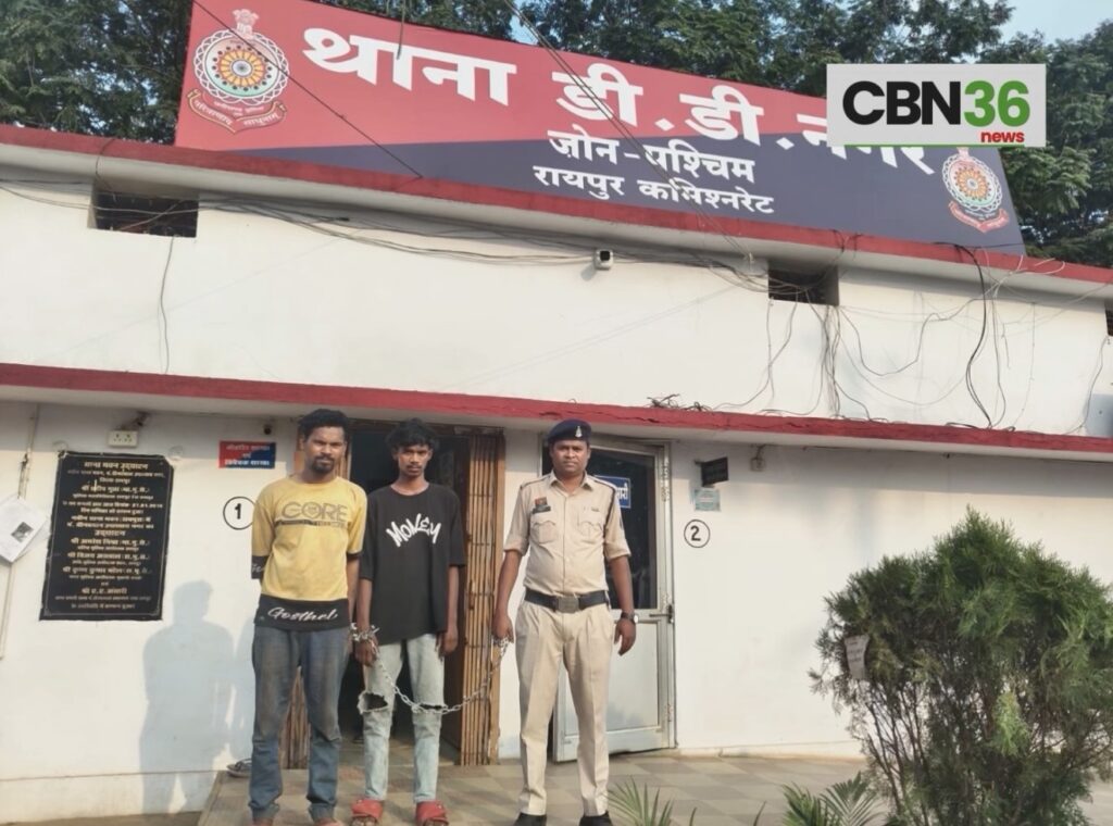 पुलिस ने इस मामले में कबीर ध्रुव (26 वर्ष), निवासी त्रिमूर्ति चौक चंगोराभाठा तथा सलीम मरई (19 वर्ष), निवासी अयोध्या नगर मटकोड़वा पारा को गिरफ्तार किया है। इसके अलावा दो नाबालिग अपचारी बालकों को भी पकड़ा गया।