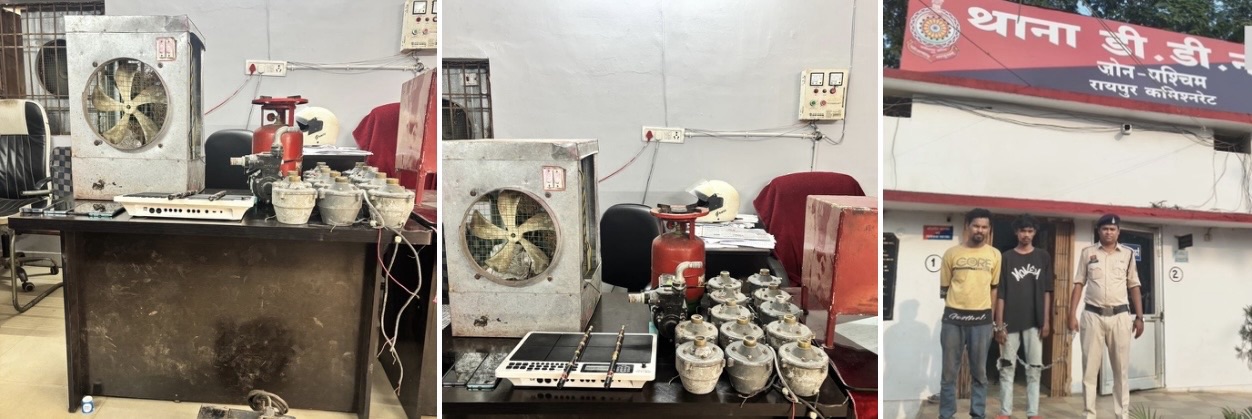 रायपुर। थाना डीडी नगर एवं एसीसीयू की संयुक्त टीम ने क्षेत्र में हुई कुल 5 चोरी की घटनाओं का सफलतापूर्वक खुलासा करते हुए 2 आरोपियों और 2 विधि से संघर्षरत बालकों के विरुद्ध कार्रवाई की है। पुलिस ने आरोपियों के कब्जे से लाखों रुपये मूल्य के चोरी गए सामान भी बरामद किए हैं।