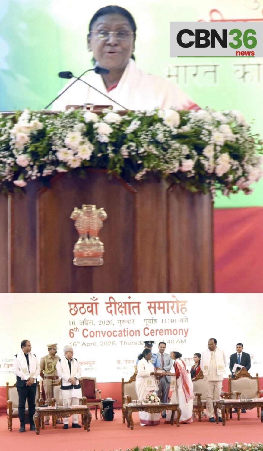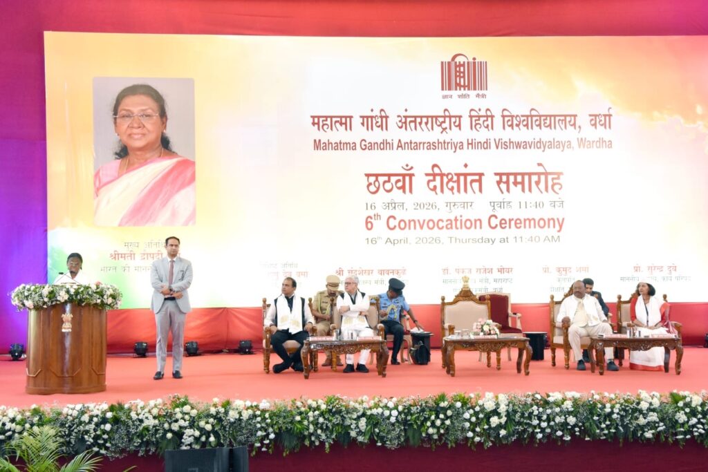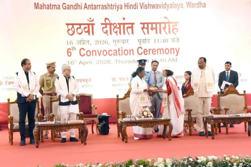 विकसित भारत के निर्माण के लिए युवाओं की सक्रिय भागीदारी आवश्यक : राष्ट्रपति द्रौपदी मुर्मु महात्मा गांधी अंतरराष्ट्रीय हिंदी विश्वविद्यालय का छठवां दीक्षांत समारोह संपन्न