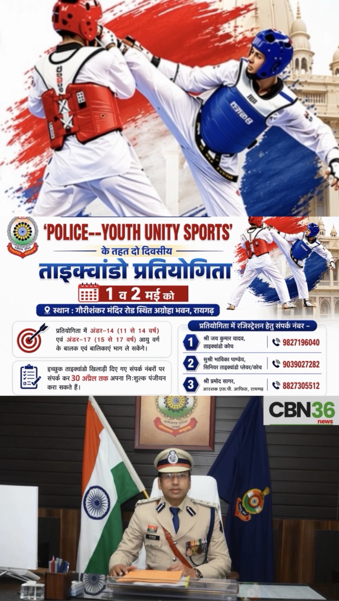 युवाओं को खेल से जोड़ने एसएसपी शशि मोहन सिंह की पहल,रायगढ़ में 1-2 मई को होगा ताइक्वांडो महाकुंभ