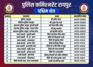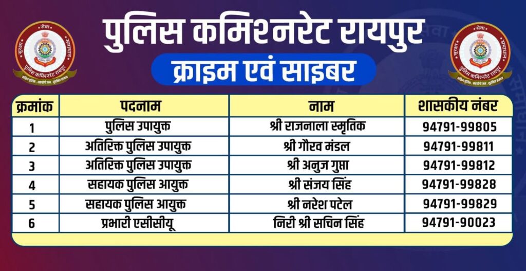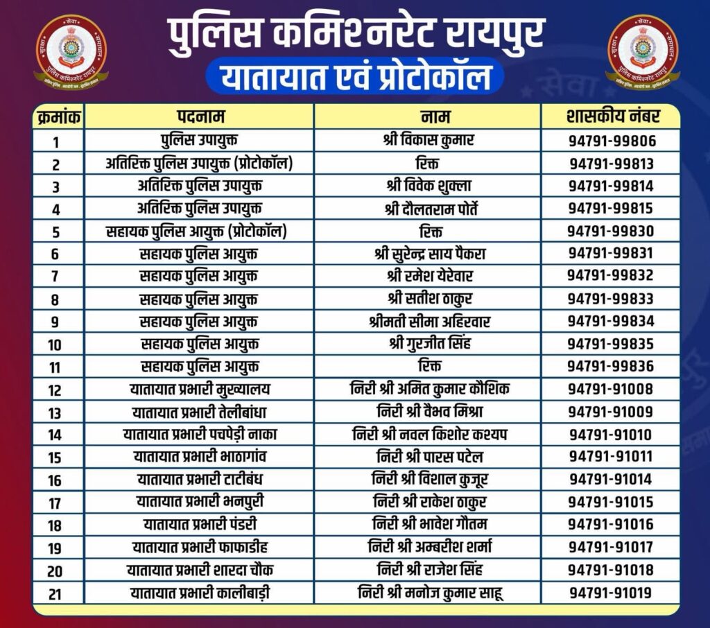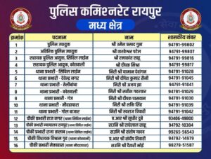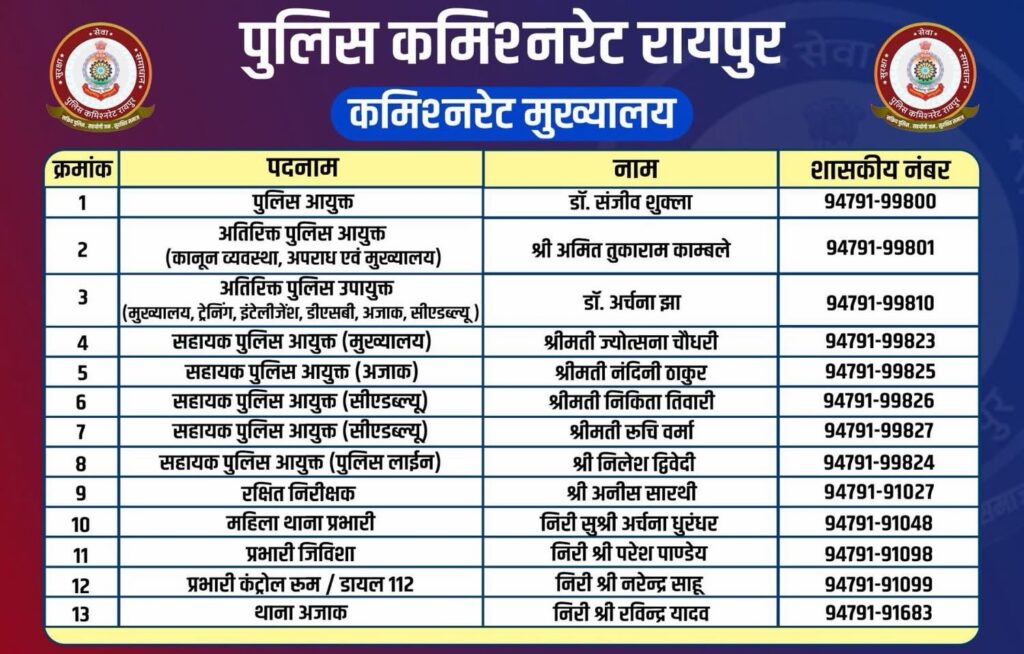 रायपुर पुलिस कमिश्नरेट की पहल: अब आमजनों के लिए उपलब्ध होंगे अधिकारियों के संपर्क नंबर