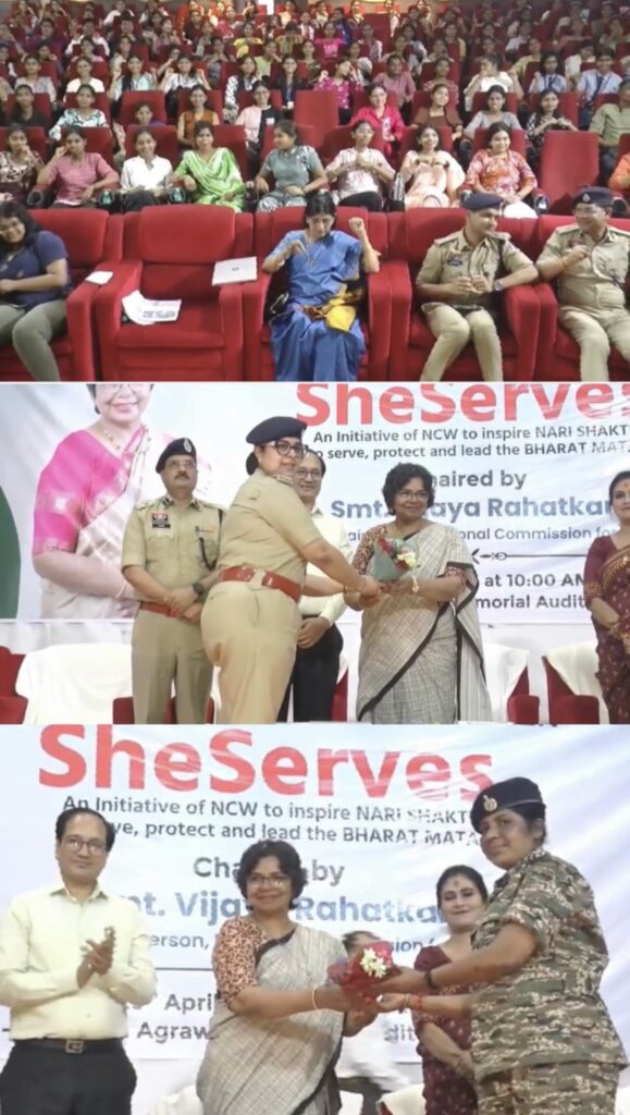 बिलासपुर, 29 अप्रैल 2026। राष्ट्रीय महिला आयोग द्वारा आयोजित शी सर्व्स (She Serves) कार्यशाला में छात्राओं को डिफेंस एवं प्रशासनिक सेवाओं में करियर बनाने के लिए प्रेरित किया गया। कार्यक्रम स्व. लखीराम अग्रवाल ऑडिटोरियम में आयोजित हुआ, जिसमें आयोग की अध्यक्ष श्रीमती विजया राहटकर मुख्य अतिथि रहीं।
