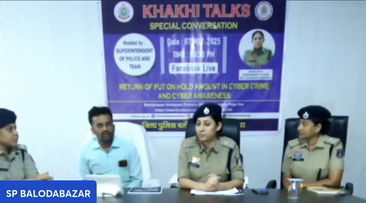 बलौदाबाजार-भाटापारा पुलिस का खाकी टॉक्स लाइव कार्यक्रम रहा बेहद असरदार बलौदाबाजार 8 नवम्बर 2025।डिजिटल युग में सतर्कता ही सबसे बड़ी सुरक्षा है-यह संदेश आज बलौदाबाजार-भाटापारा