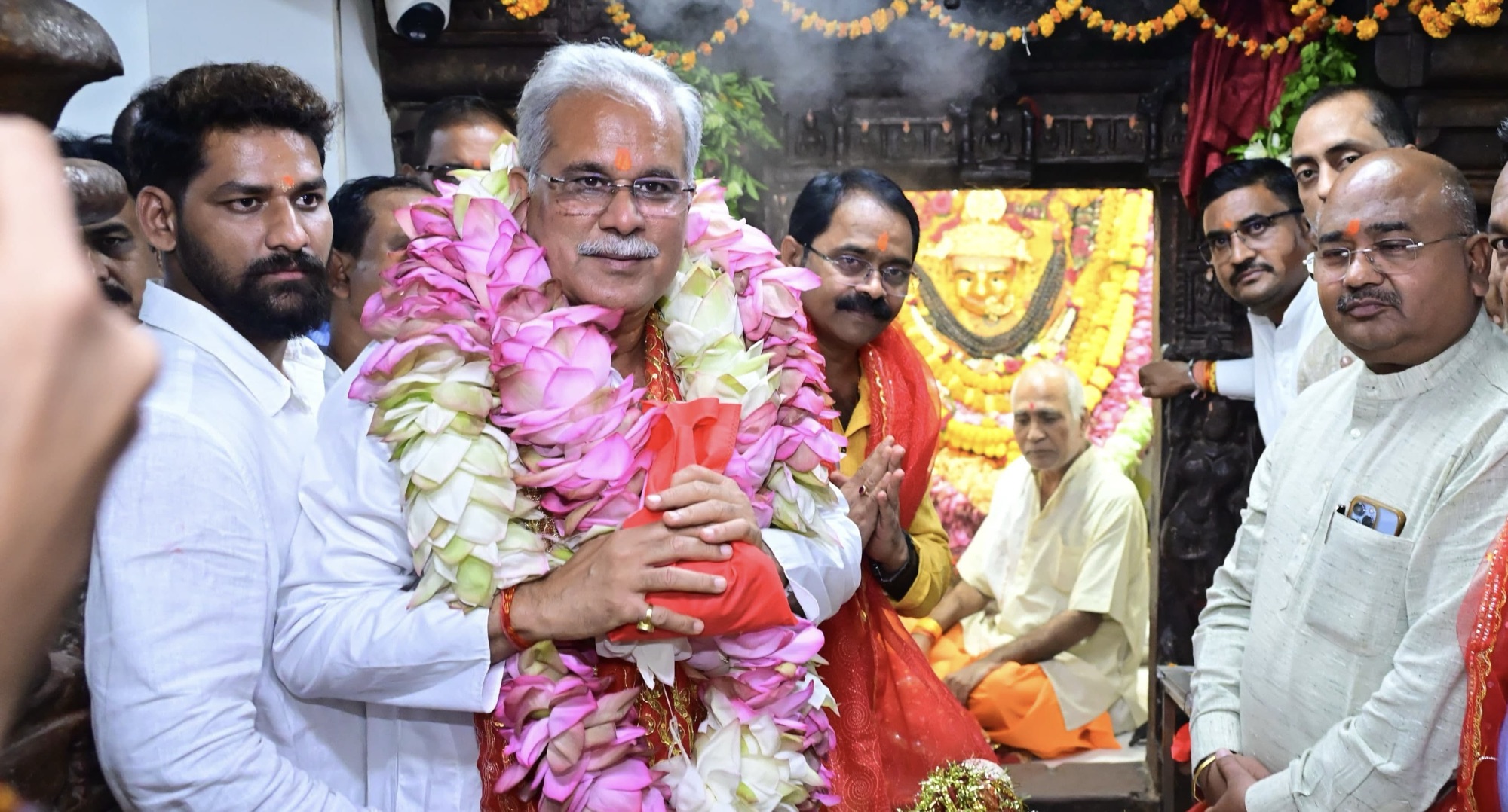 पूर्व मुख्यमंत्री भूपेश बघेल का रतनपुर प्रवास, मां महामाया के दरबार में मत्था टेका