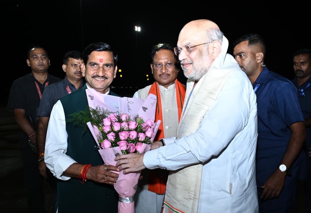 रायपुर। केंद्रीय गृहमंत्री अमित शाह के रायपुर आगमन पर हवाई अड्डे पर उनका जोरदार स्वागत किया गया। इस अवसर पर आवासन एवं शहरी कार्य राज्य