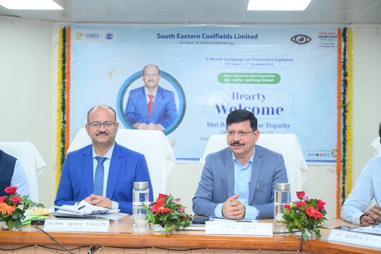 बिलासपुर।सीवीओ कोल इंडिया ब्रजेश कुमार त्रिपाठी अपने दो दिवसीय दौरे पर एसईसीएल मुख्यालय पहुंचे। इस मौके पर उन्होंने एसईसीएल सभागार में सतर्कता पर विशेष व्याख्यान
